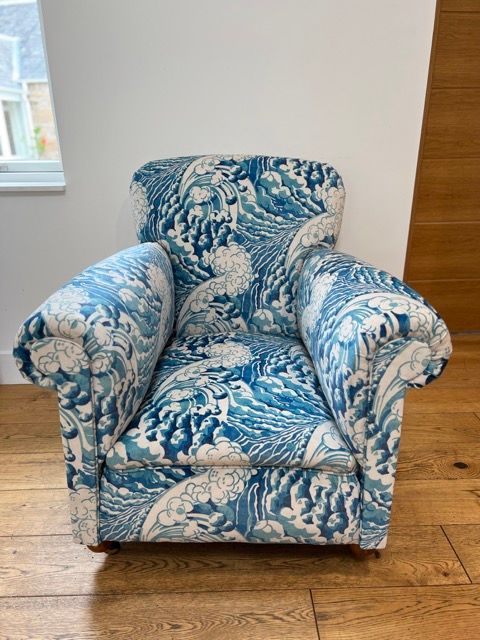 There are fully reupholstered chairs available which have been restored from the frame upwards and fully meet current fire safety regulations.